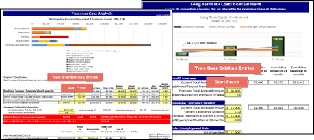 The P&L impact of the remaining HR Strategies can be modeled using the tools below, either on a global estimate level, or a more specific business unit or department level.